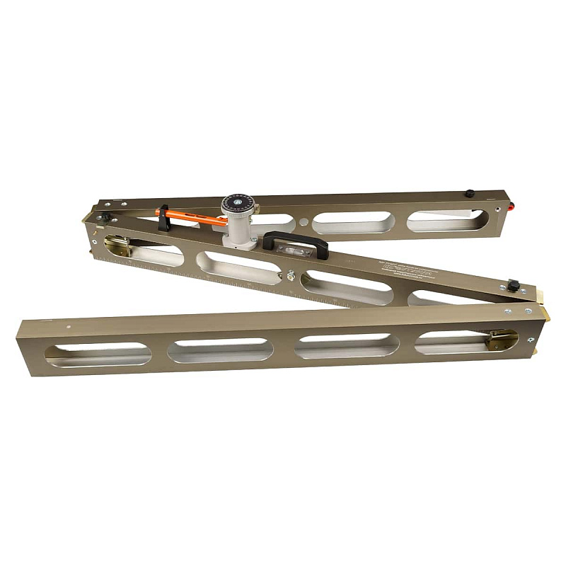 Универсальная складная 3-х-метровая дорожная рейка (для контроля основных геометрических параметров дорог - ровности, уклонов, заложение откосов) представляет собой трехсекционную складную конструкцию. В рабочем состоянии ее секции жестко скрепляются между собой стяжными винтами. В центральной секции рейки расположены: измеритель уклонов, состоящий из головки с лимбом (шкалой), совмещенной с уровнем горизонтальной установки измерителя; балансир-эклиметр для определения крутизны откосов четырех видов. К рейке приложен клин-промерник, имеющий две шкалы измерения: левая шкала для измерения просветов под рейкой; правая шкала для замера толщин слоев дорожной одежды.