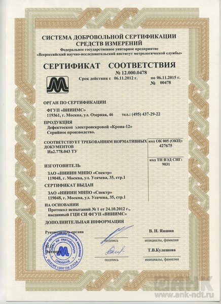 Технические характеристики электроискрового дефектоскопа КРОНА-12