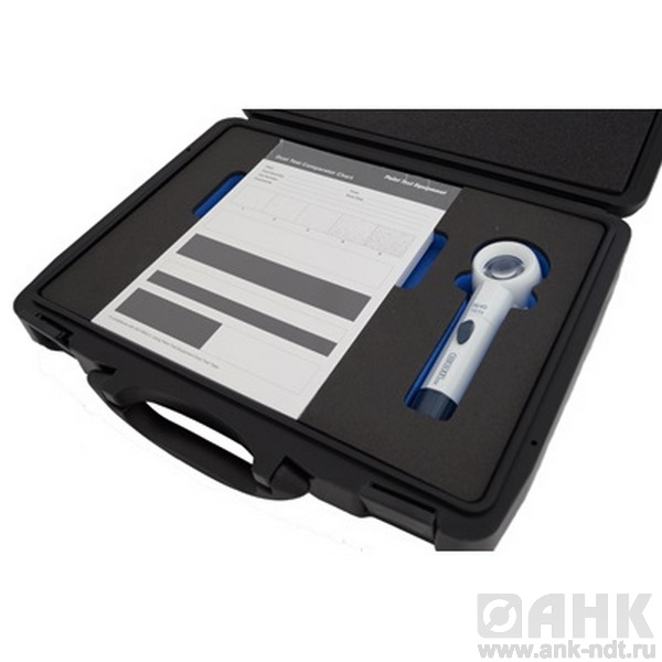 Набор для определения запыленности поверхности поставляется в в промышленном футляре для переноски, заполненном поролоном, с лентой для испытаний (рулон 60 м), графиками для испытаний (50 шт.) и лупой с 10-кратным увеличением.