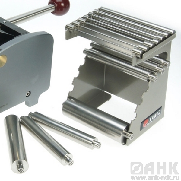 Набор для испытания образцов на изгиб на цилиндрическом стержне (согласно ISO 1519) TQC SP1820 (согласно ISO 1519): прибор для испытания, набор из 14 стержней диаметрами 2, 3, 4, 5, 6, 8, 10, 12, 13, 16, 19, 20, 25, 32 мм. Длина стержней 100 мм.