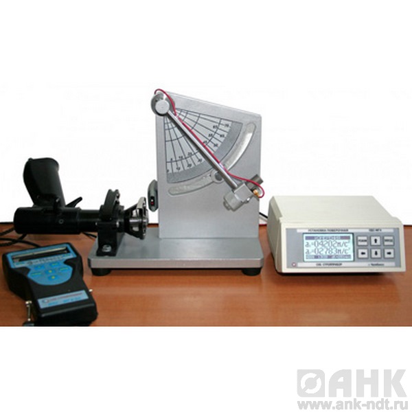 Установка состоит из маятника, с закрепленным на нем измерительным преобразователем, зажима для крепления поверяемого прибора, электронного блока и оптического датчика, предусмотрена возможность начальной фиксации маятника на заданный угол.