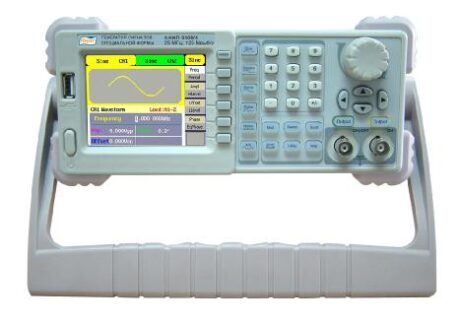 Генераторы представляют собой лабораторные многофункциональные измерительные приборы, принцип действия которых основан на технологии прямого цифрового синтеза, который позволяет получать стабильные, высокоточные сигналы с низким коэффициентом нелинейных искажений практически любой формы. На передней панели генератора находится цветной жидкокристаллический дисплей, состоящий из двух частей: в верхнем окне отображается форма генерируемого сигнала, в нижнем окне — его параметры. Справа от дисплея находится вертикальный ряд кнопок меню, с помощью которых пользователь может ввести меню различных генерируемых функций, и ряд кнопок, используемых при генерации стандартных форм сигналов. В нижней части панели расположены выходные разъемы двух каналов и кнопки, используемые при выборе функций модуляции. Для ввода цифровых параметров на панели имеется три группы органов управления: кнопки направлений (со стрелками), вращающийся регулятор параметров и цифровая клавиатура.